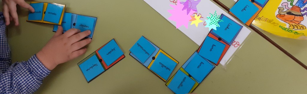 22 marzo, 2020 Alicia Gil Nos encanta jugar con nuestro dominó. En este dominó podemos encontrar palabras relacionadas con el proyecto que estamos trabajando. Compártelo: Compartir en X (Se abre en una ventana nueva) X Comparte en Facebook (Se abre en una ventana nueva) Facebook Me gusta Cargando... Relacionado