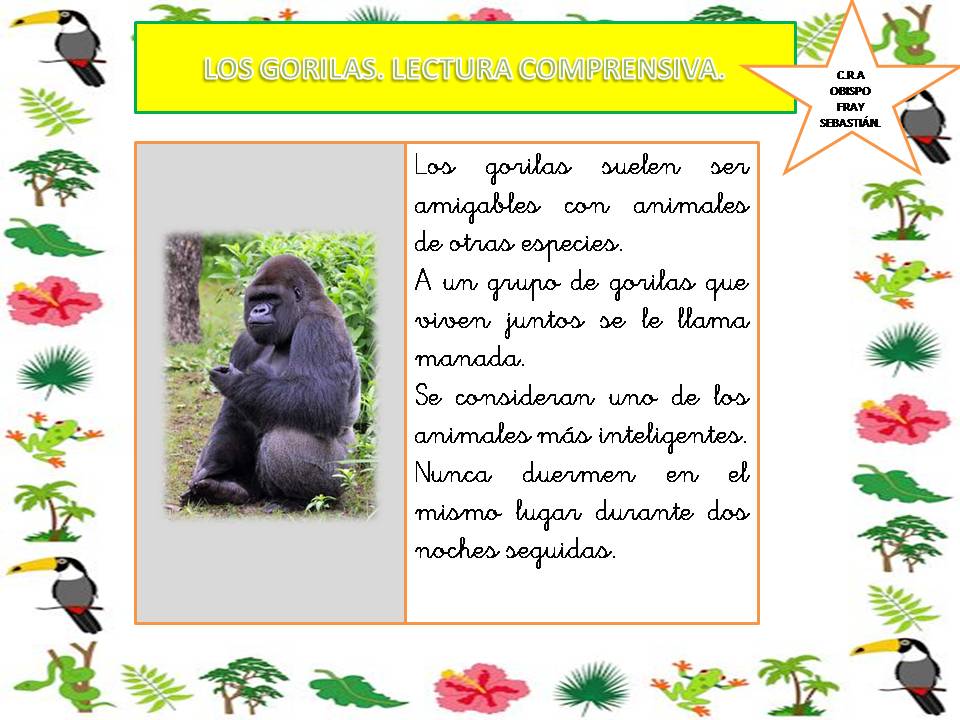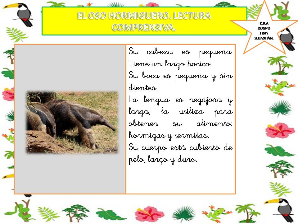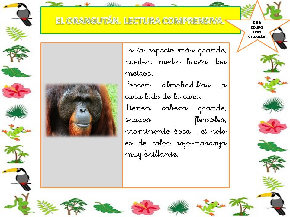 11 mayo, 202012 mayo, 2020 Alicia Gil LECTURA COMPRENSIVA. ANIMALES DE LA SELVA. http://www.gorilapedia.com/caracteristicas-gorilas/https://fundacionmona.org/el-orangutan/https://pixabay.com/es/photos/oso-hormiguero-gigante-animal-1200155/https://www.ambientum.com/ambientum/biodiversidad/una-nueva-oportunidad-jaguar.asp Compártelo: Compartir en X (Se abre en una ventana nueva) X Comparte en Facebook (Se abre en una ventana nueva) Facebook Me gusta Cargando... Relacionado